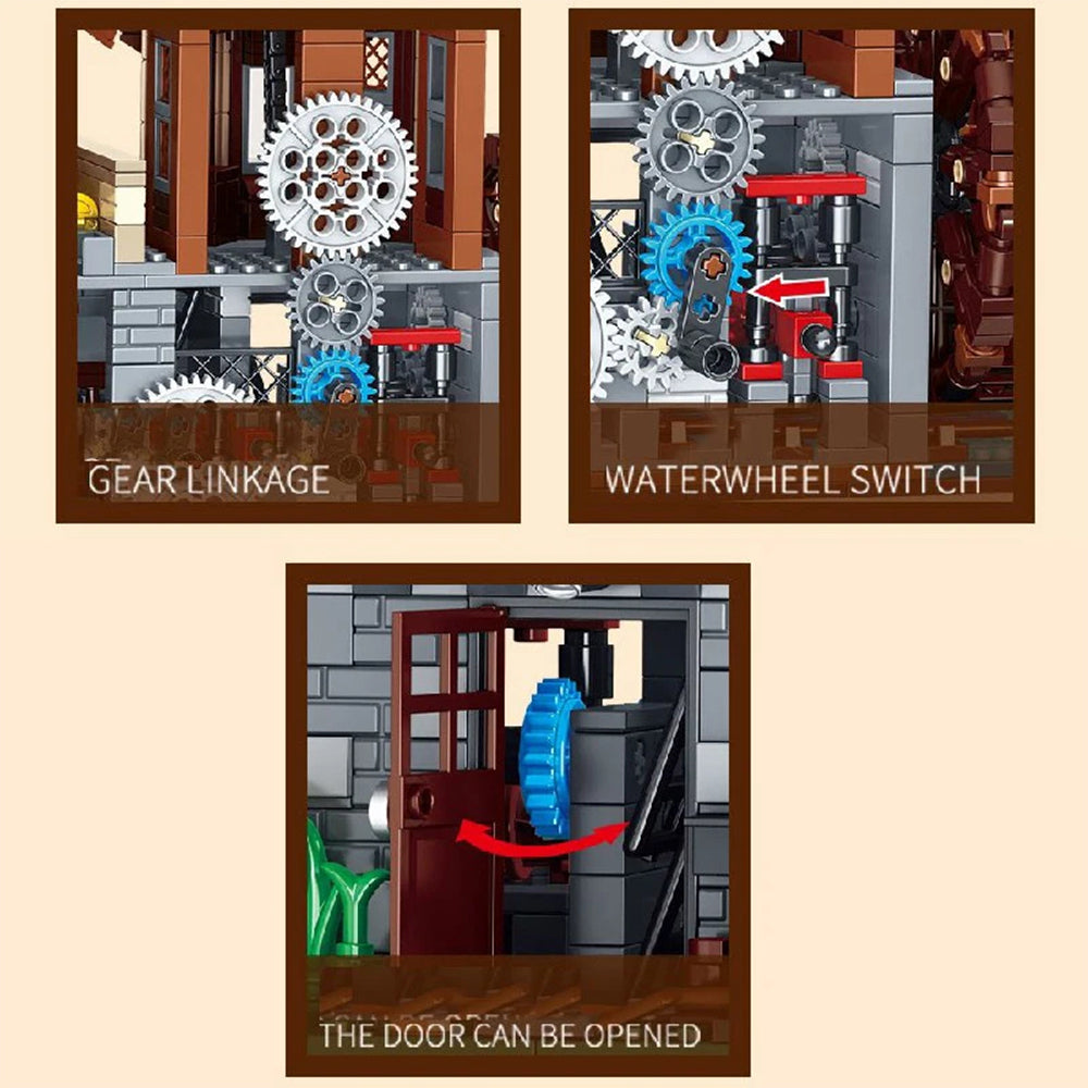 Windmill and waterwheel are driven as one system, not as random spinning parts.